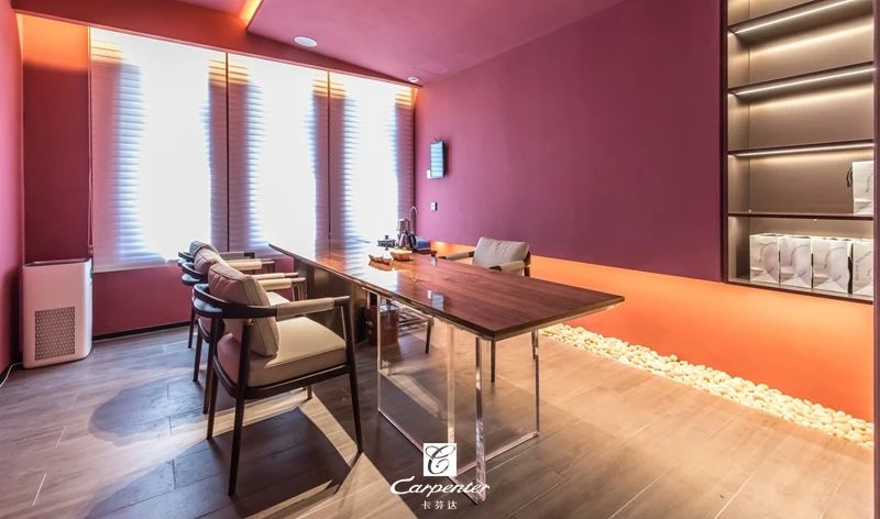 茶室以經(jīng)典中國(guó)紅為背景